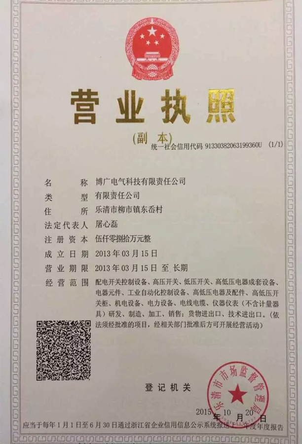 博廣電氣科技有限責任公司是一家以輸配電成套設備為導,集研發、制造、銷售服務等一體化的企業。公司總部坐落于浙江省樂清市經濟開發區。